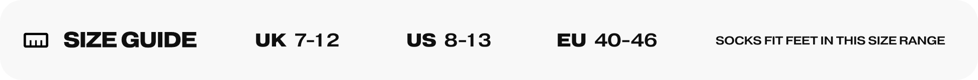 APEX socks are built with an ExoFrame® It's purpose is to give you a personalised fit, wrapping around your heel, midsole, and the top of the toe. This means that our socks fit across different foot sizes without losing that same 'locked in' performance.