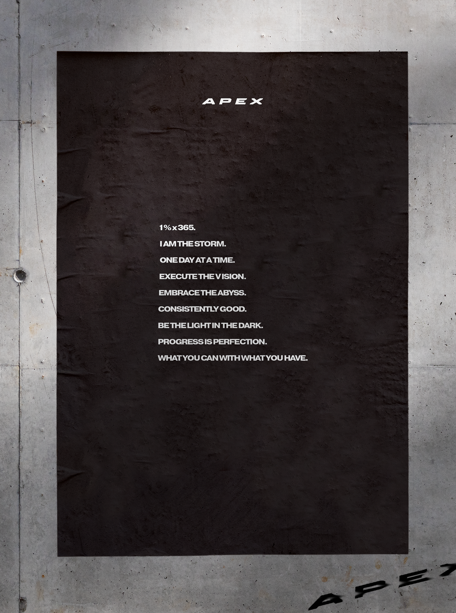 Apex is driven to help you upgrade yourself to 2.0. Combining elite physical performance x psychological well-being to help you be stronger, fitter, calmer day in, day out.